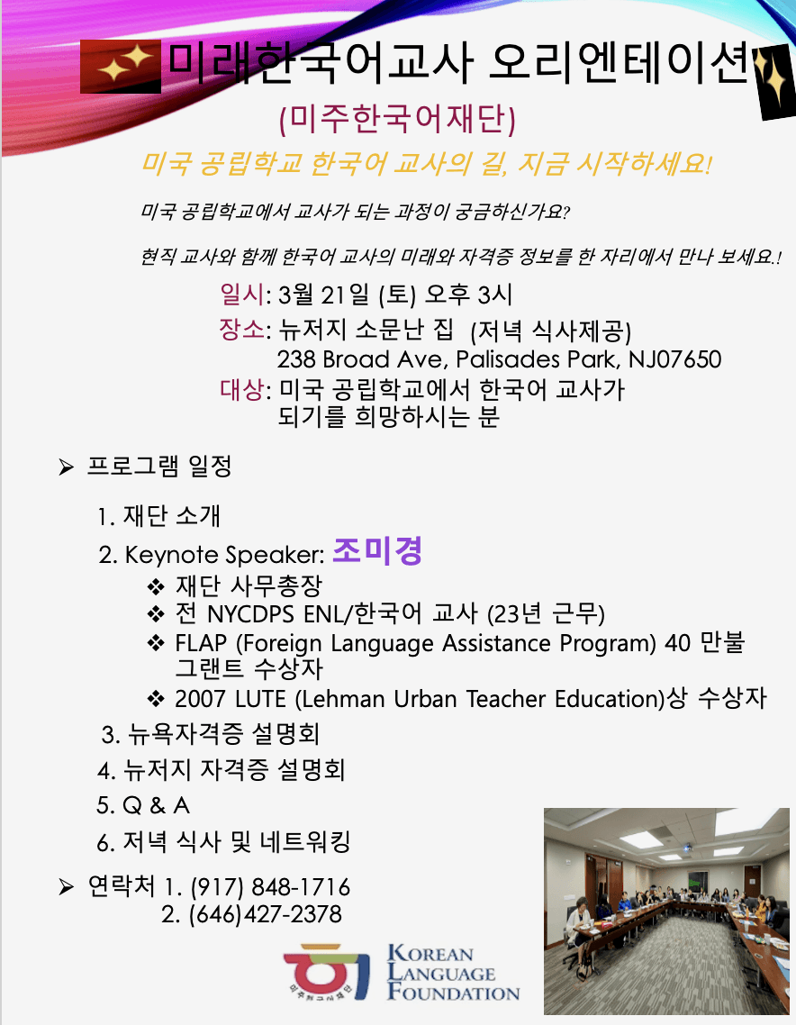 재단 사무총장, 전 NYCDPS ENL/한국어교사(23년 근무)